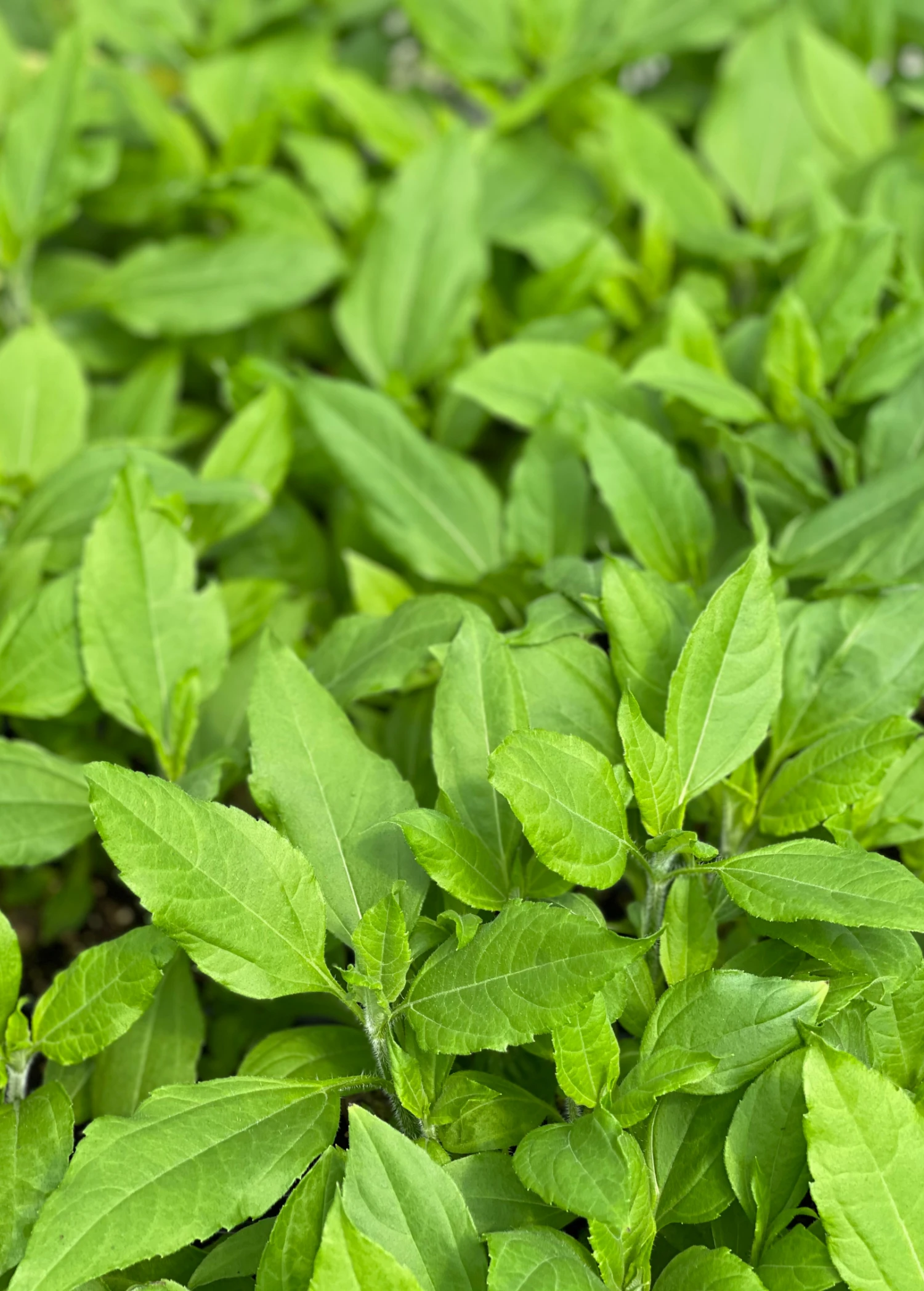 Jerusalem Artichoke (Helianthus tubersosus), also known as Sunchoke, is a plant with keen survival instincts. Above the ground, Jerusalem Artichoke boasts beautiful towering, classic sunflower look-alikes. Below the earth, however, the plant reveals large edible and nutritious tubers! Think ginger meets potato. They’re not related artichoke, but have a distinctly delicious artichoke-like flavor. Hence the nickname, Sunchoke (Sunflower + Artichoke!)Â