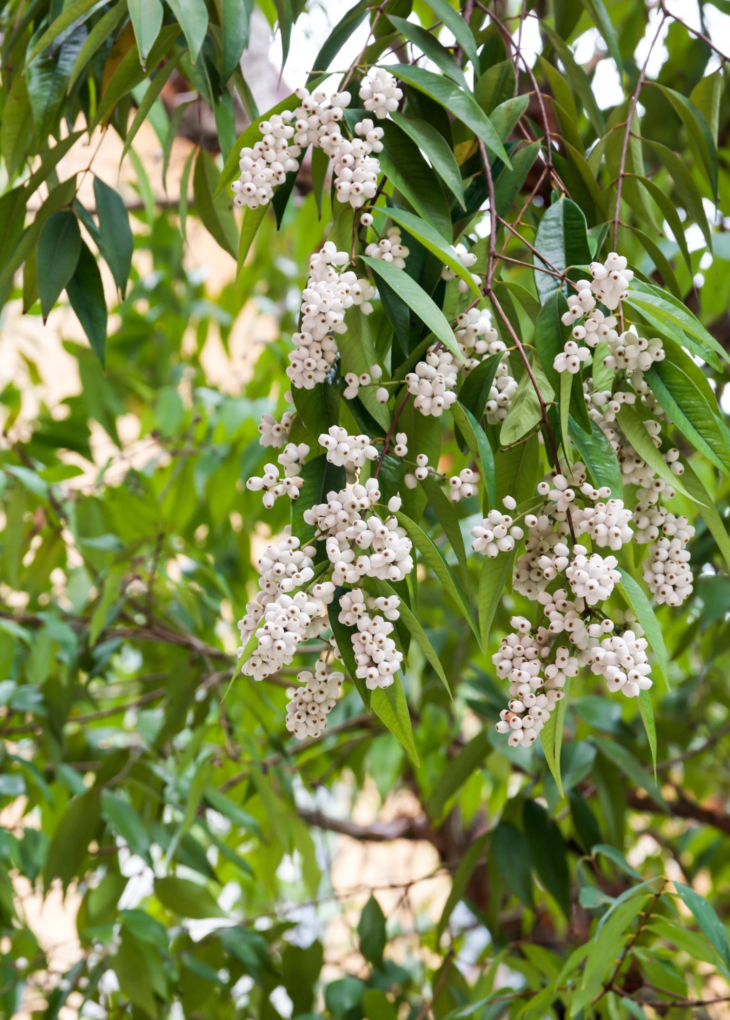Gathering handfuls of wild food plants like young Phak Mek (Syzygium gratum, Samet Chun, Maak mek, ຜັກສະເມັກ, Punk Tree, Paperbark Tea Trees) simply brings a sense of empowerment. In Southeast Asia, plants like Syzygium gratum grow in agricultural ecosystems, which develop as a result of farming and horticultural systems. Syzygium gratum also occurs naturally in tropical and subtropical ecosystems from India to the Pacific Islands, where it can be found as medium-sized shrubs, or giant trees. Young shoots and new growth have a red tint, maturing into woody red stems with flaky bark, and glossy evergreen leaves. Flowers are small, round, and plentiful, and give way to white, fleshy berries.